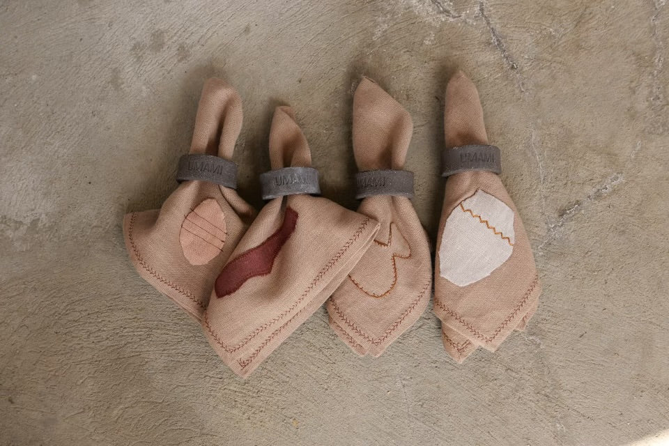 Les serviettes sont vendues par set de 4. Vous pouvez préciser votre choix de couleur concernant les ronds de serviettes par e-mail a umamiceramic@gmail.com