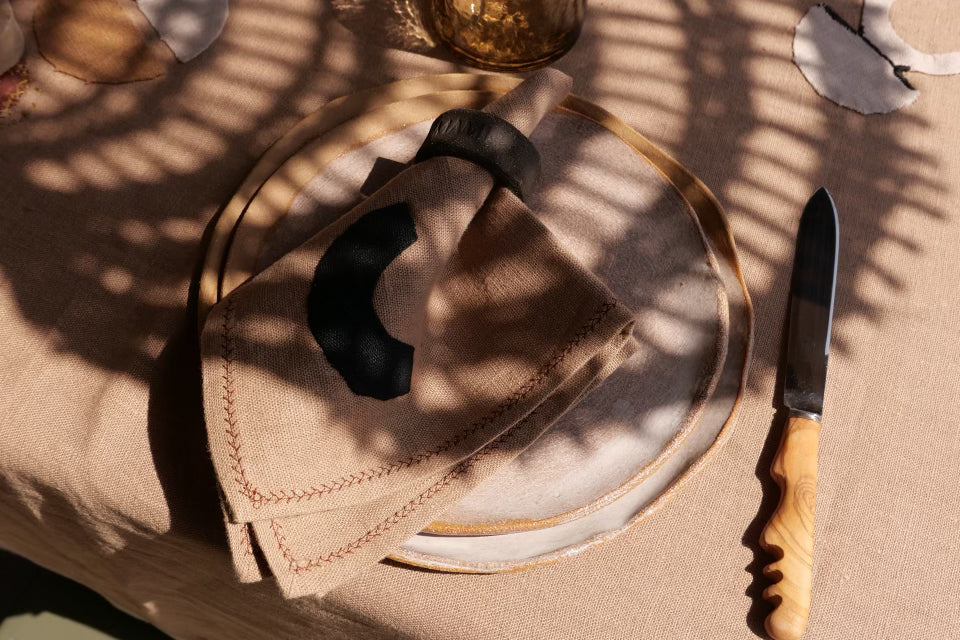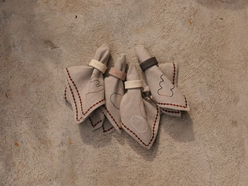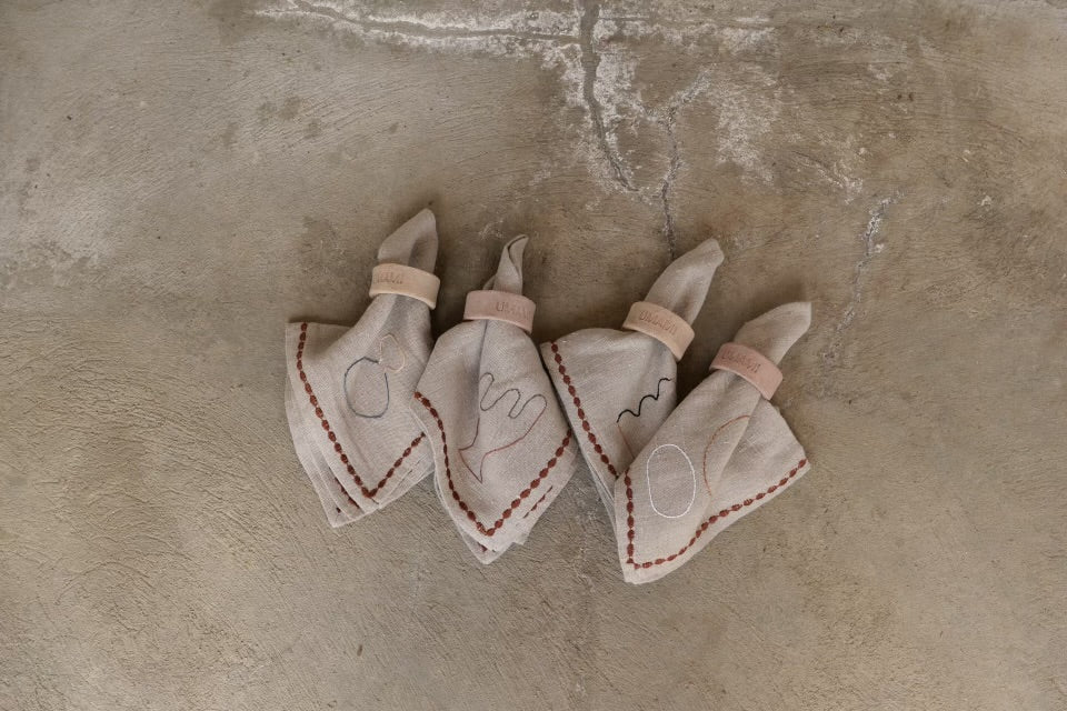 Confectionnées entièrement à la main au sein de notre atelier, les serviettes ‘Agape’ en lin brodé se parent d’empiècements délicats et seront disponibles en sets de quatre. Chaque set, accompagné de son rond de serviette assorti, est une promesse d’une expérience de table immersive et harmonieuse, du plat au linge de maison.