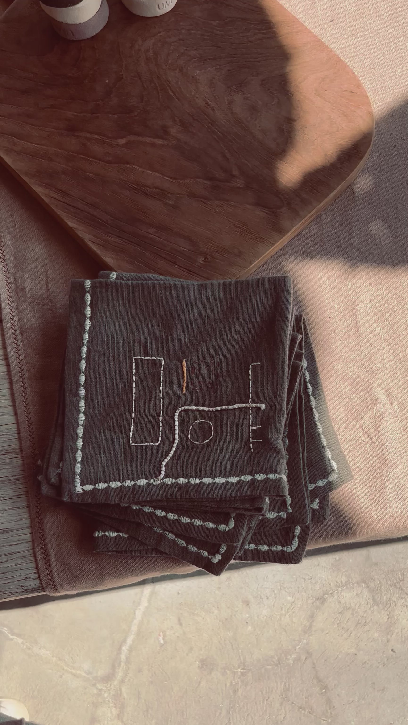Nous sommes fières de vous présenter notre gamme de serviettes de table baptisée ‘Agape’, une série artisanale qui invite au partage et à l’élégance naturelle, évoquant les agapes antiques où convivialité et gastronomie s’entremêlaient dans la joie.
