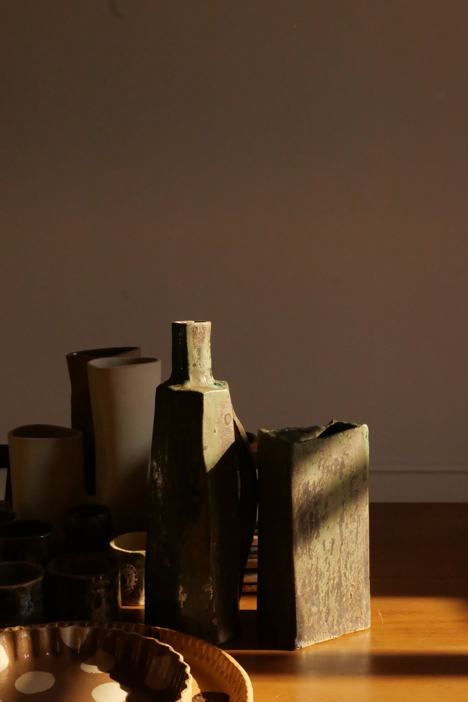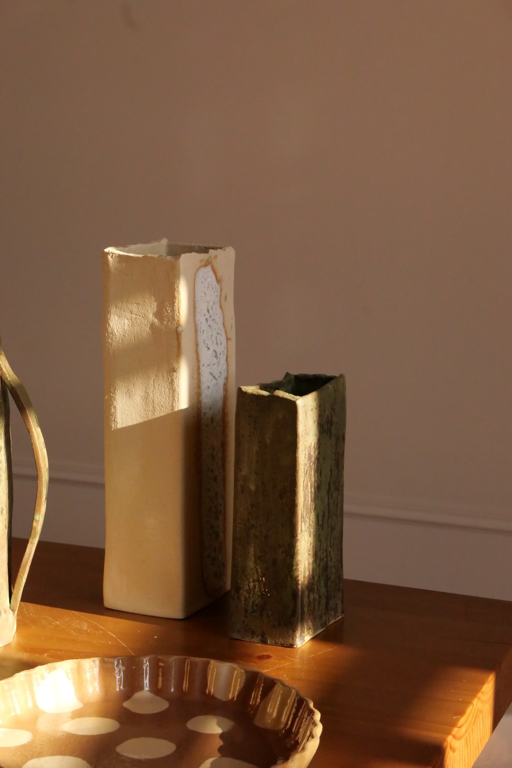 Il existe en deux tailles, les deux ont une silhouette rectangulaire, simple et puissante, capable de structurer un espace à elle seule. Par sa taille, les vase s'intègrent avec facilité dans différents environnements, tout en conservant une présence forte et sculpturale.