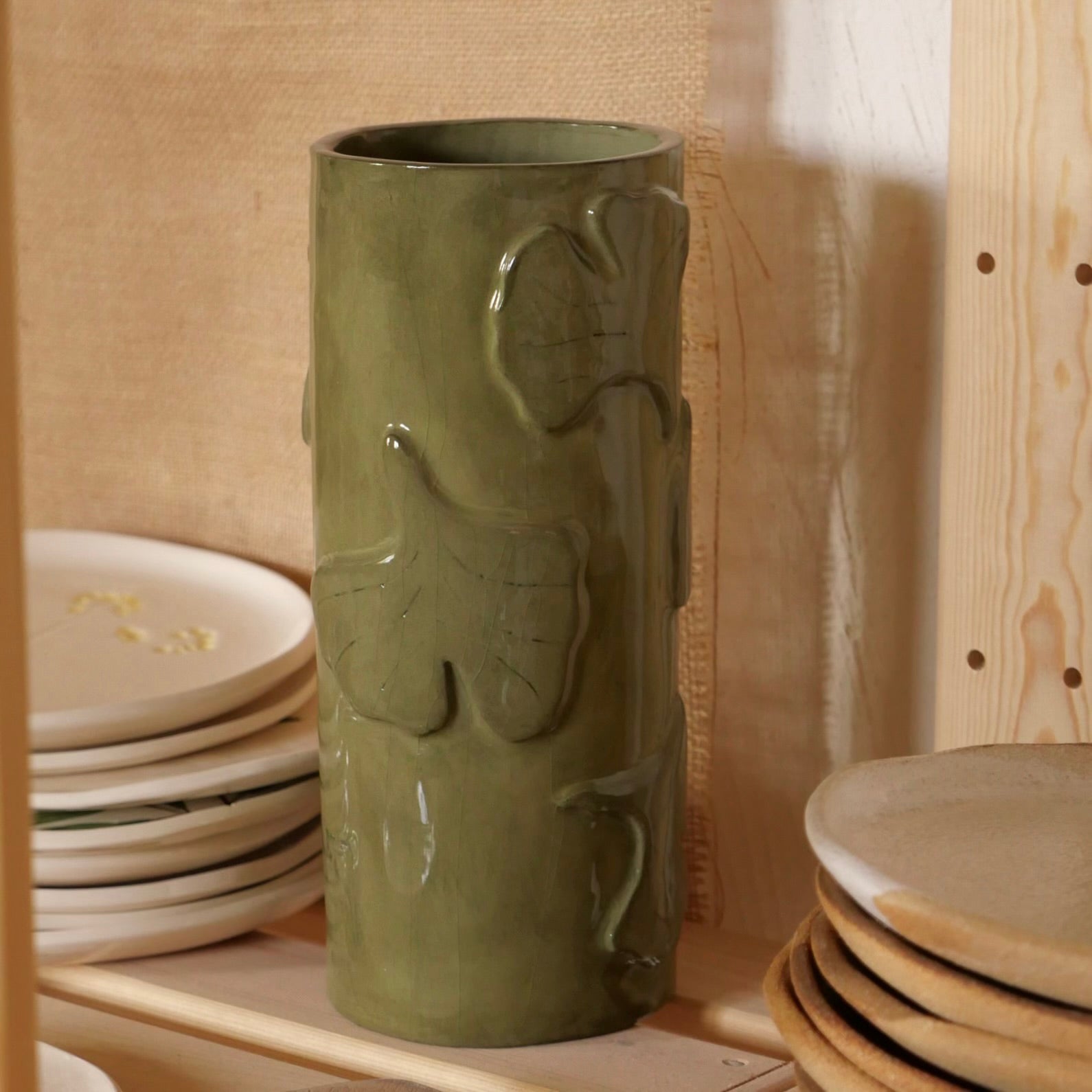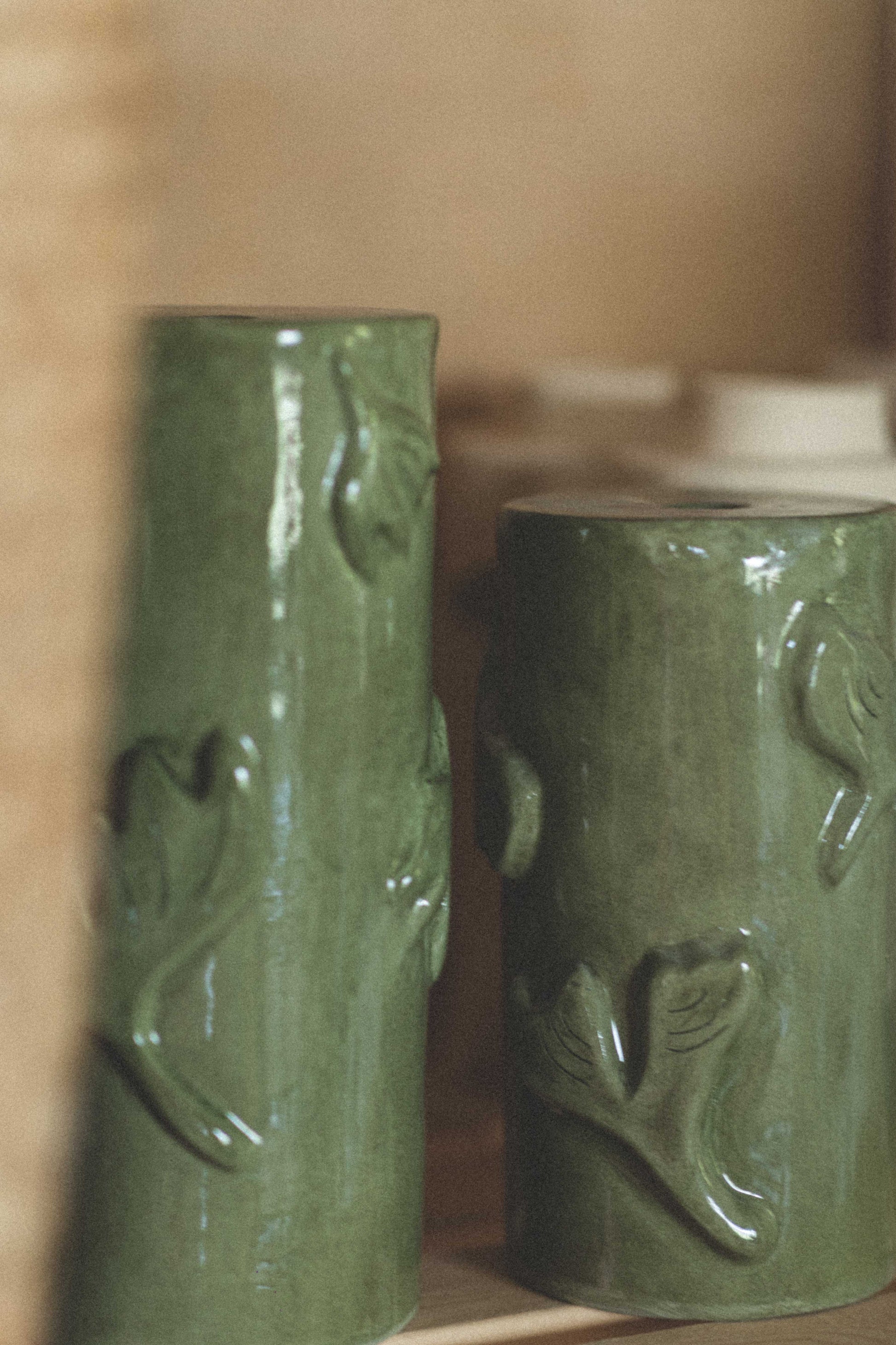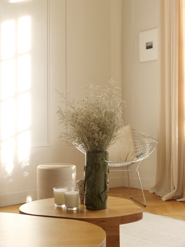GIOIA signifie la joie en corse. Ce vase est une éloge joyeuse de la vie, il fait écho à la chaleur, aux mouvements. On l'imagine rempli de fleurs colorées, posé sur une table un soir d'été.