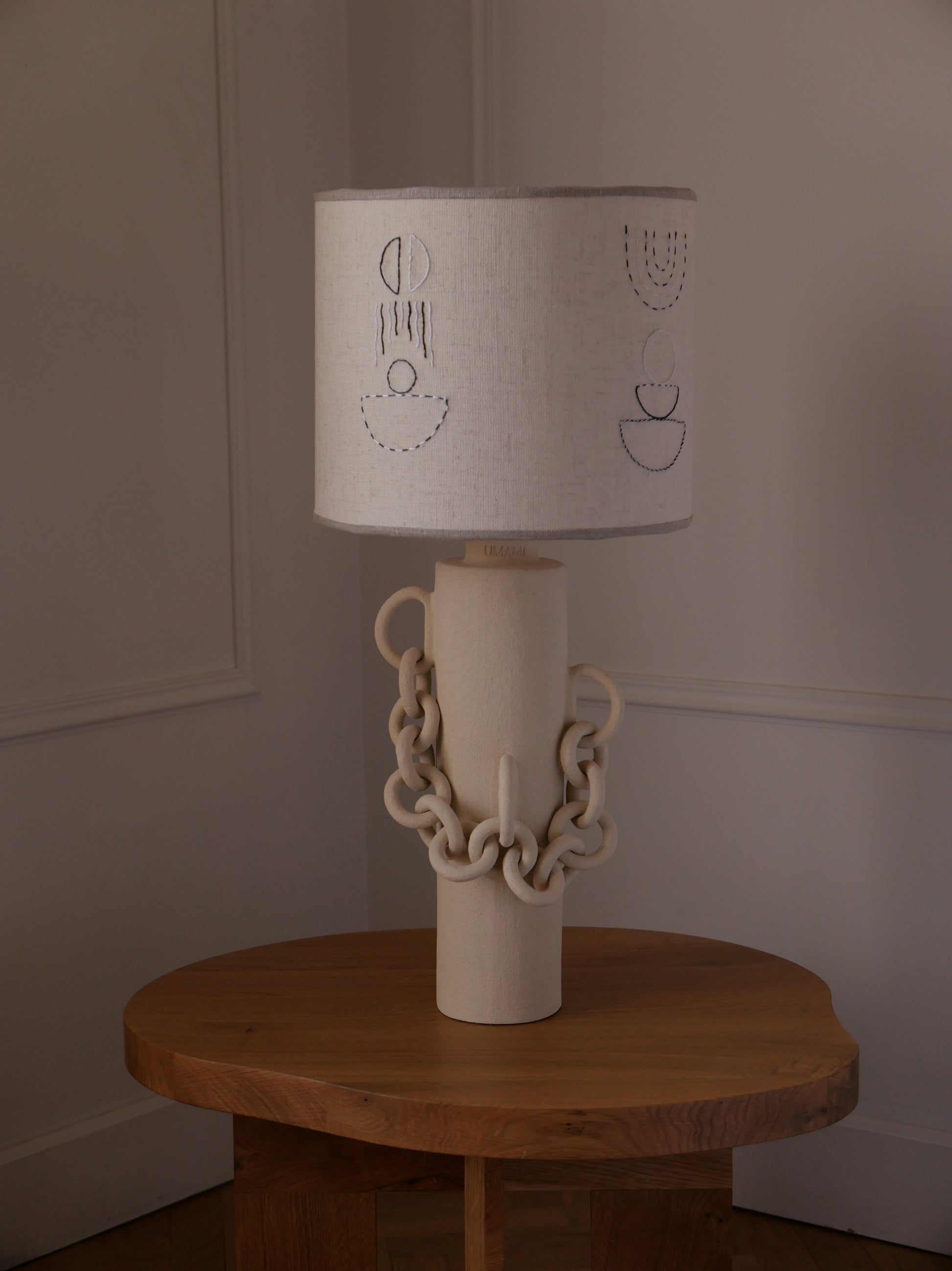 • Tissu de l’abat-jour : Lin naturel brodé à la main.