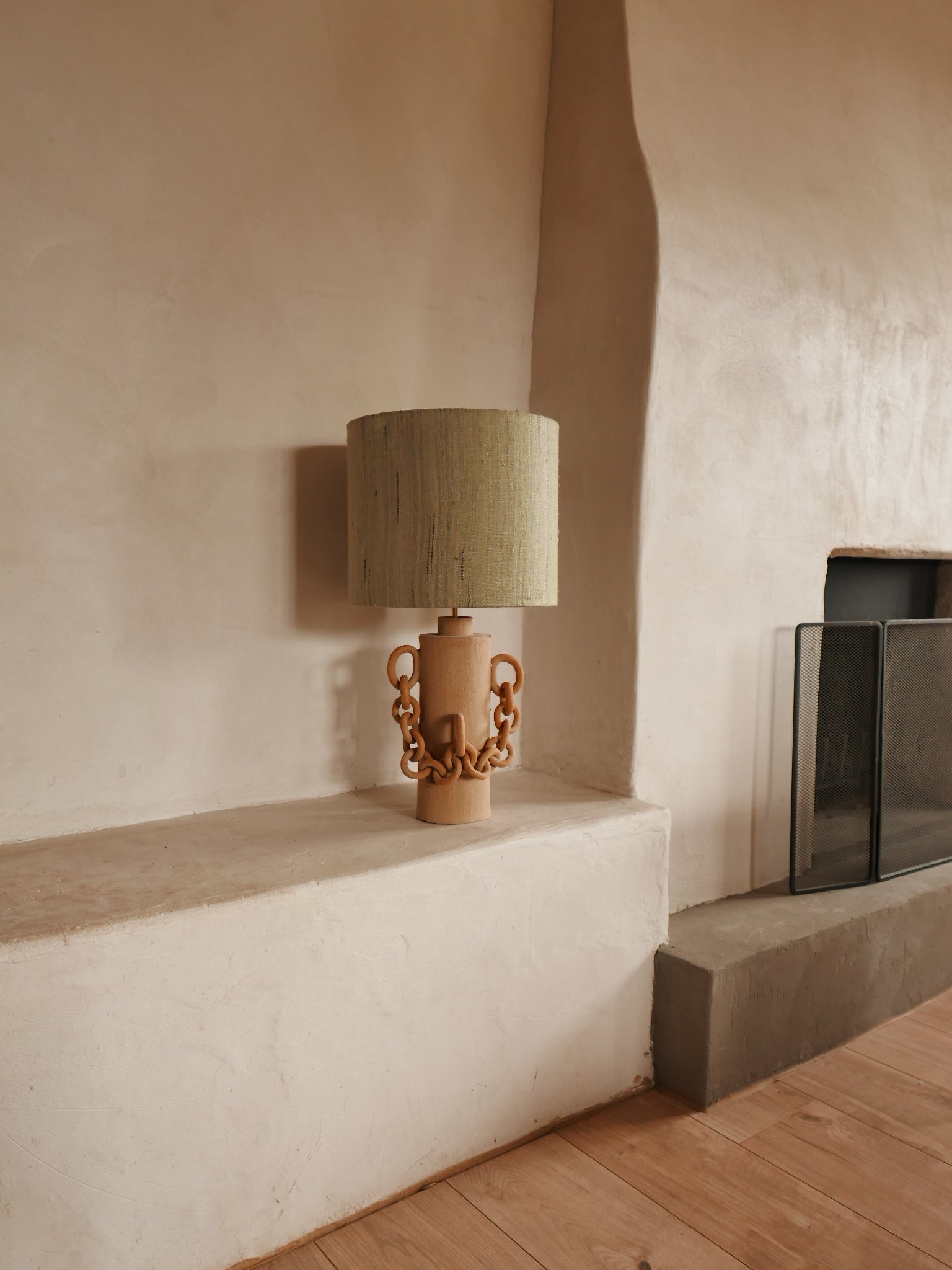 La lampe ROCA est réalisée en grès roux , matière qui par sa variété de couleur nous évoque les différentes teinte de la roche.