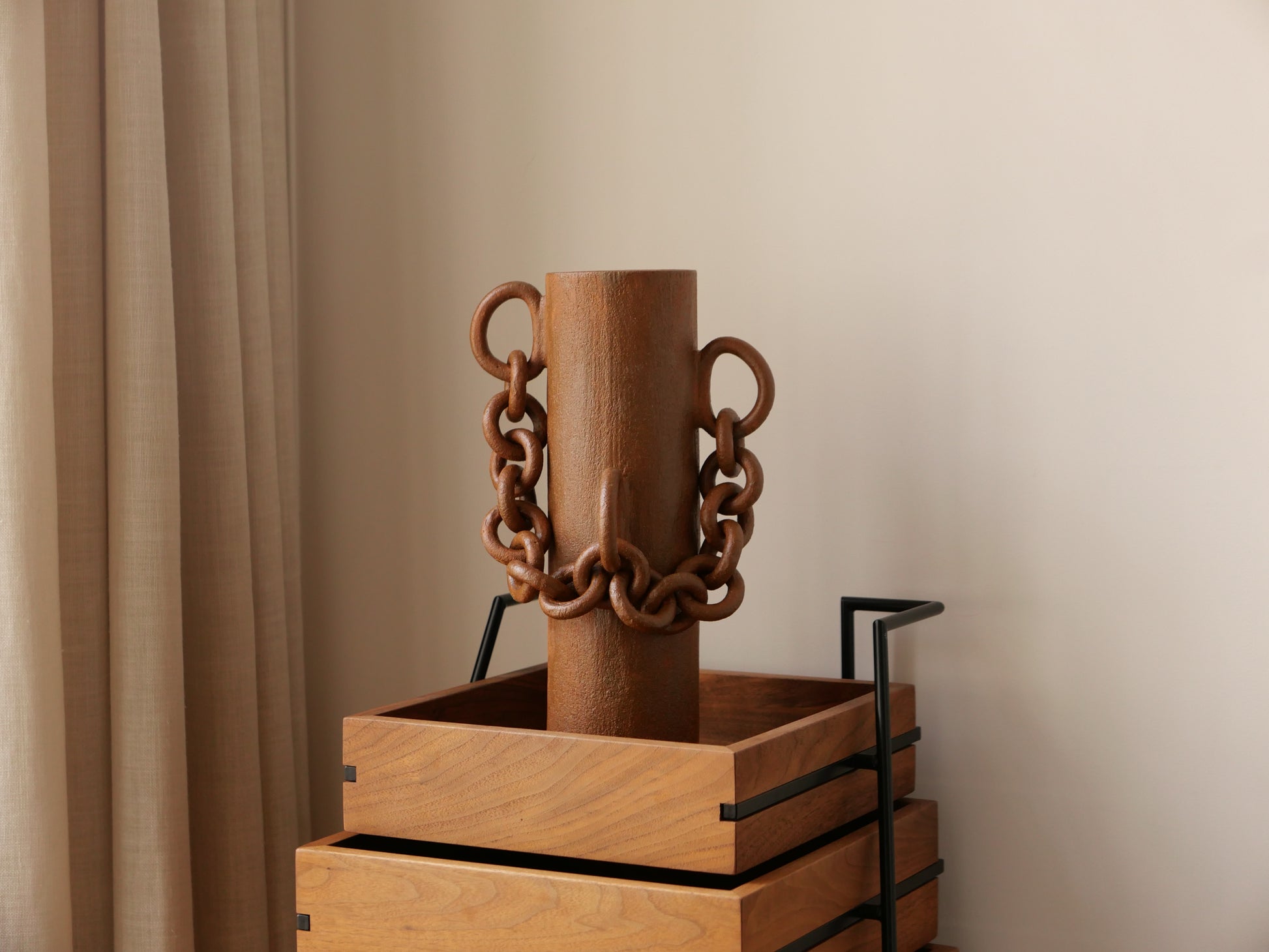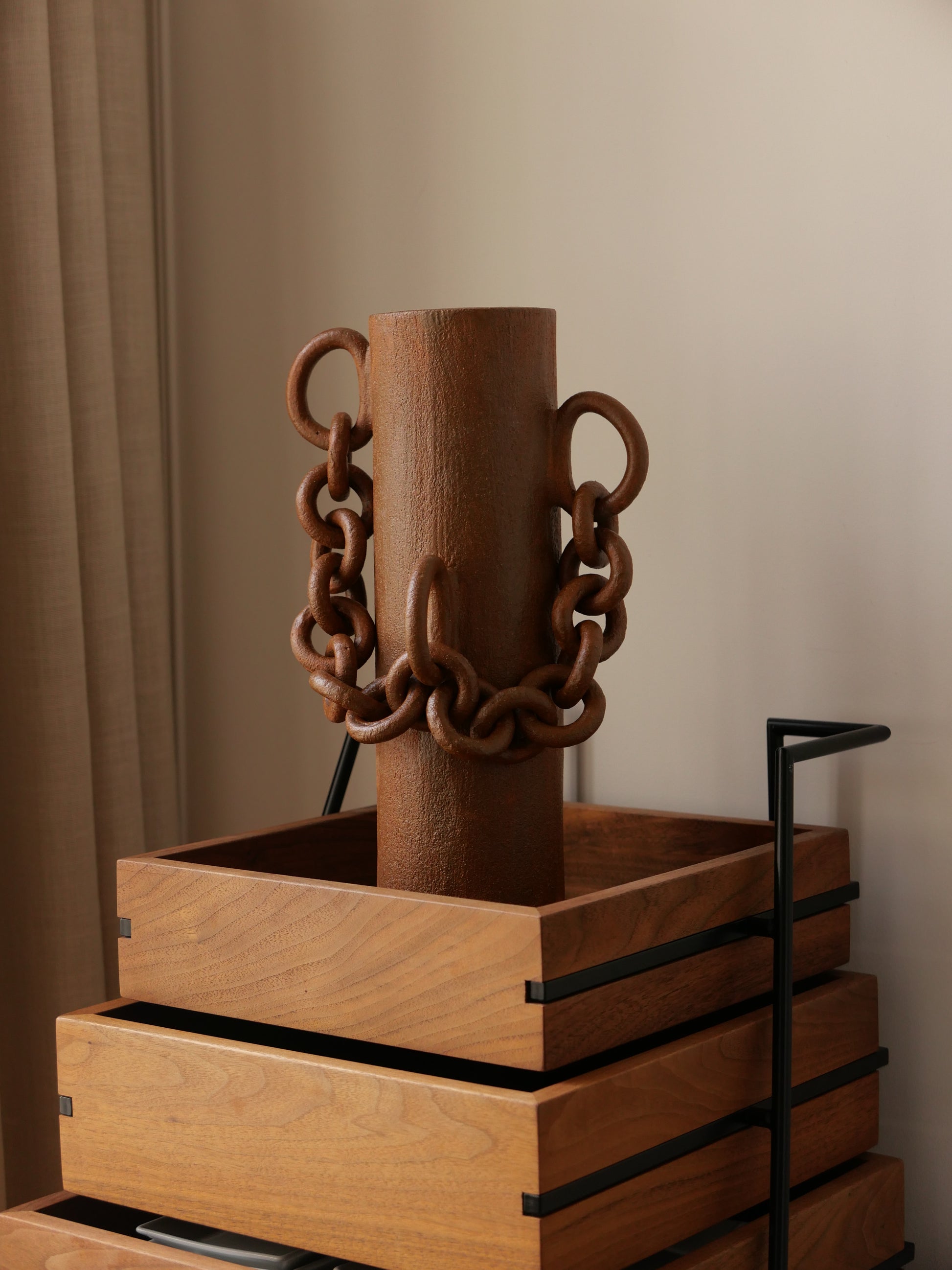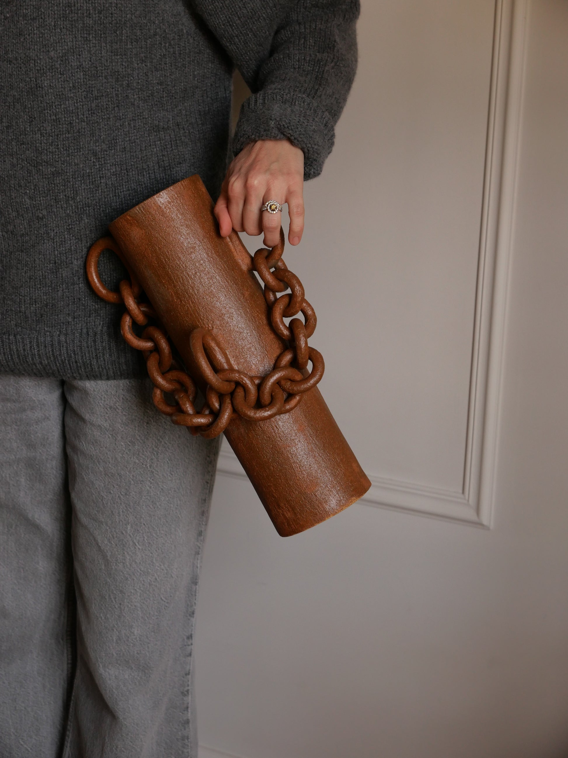 Ce vase est un hommage à la Mer Méditerranée, il fait écho aux maillons des chaines de bateau. Platon imaginait la terre et la mer reliés par une chaine et en faisait par conséquent le symbole du lien sacré.