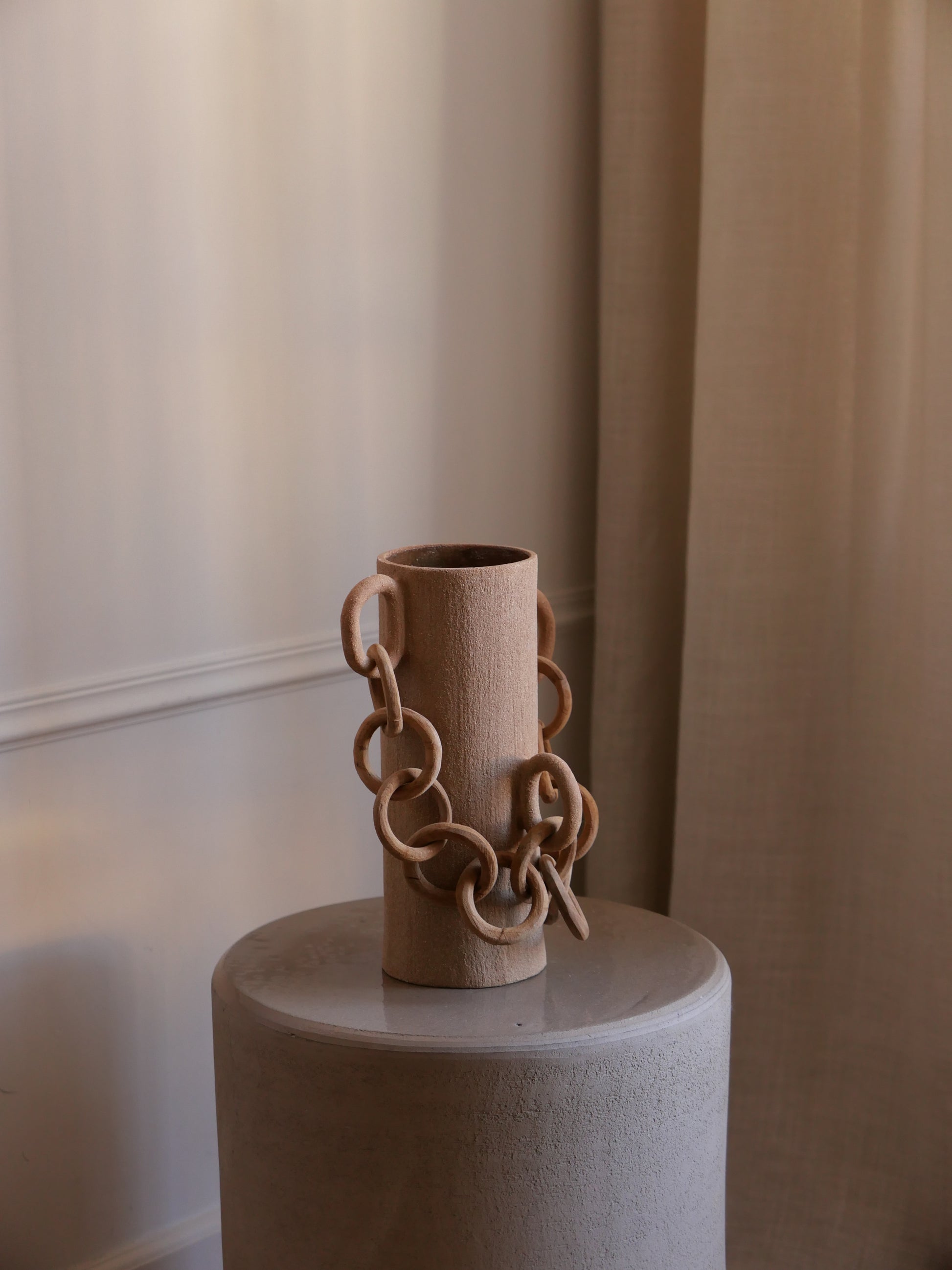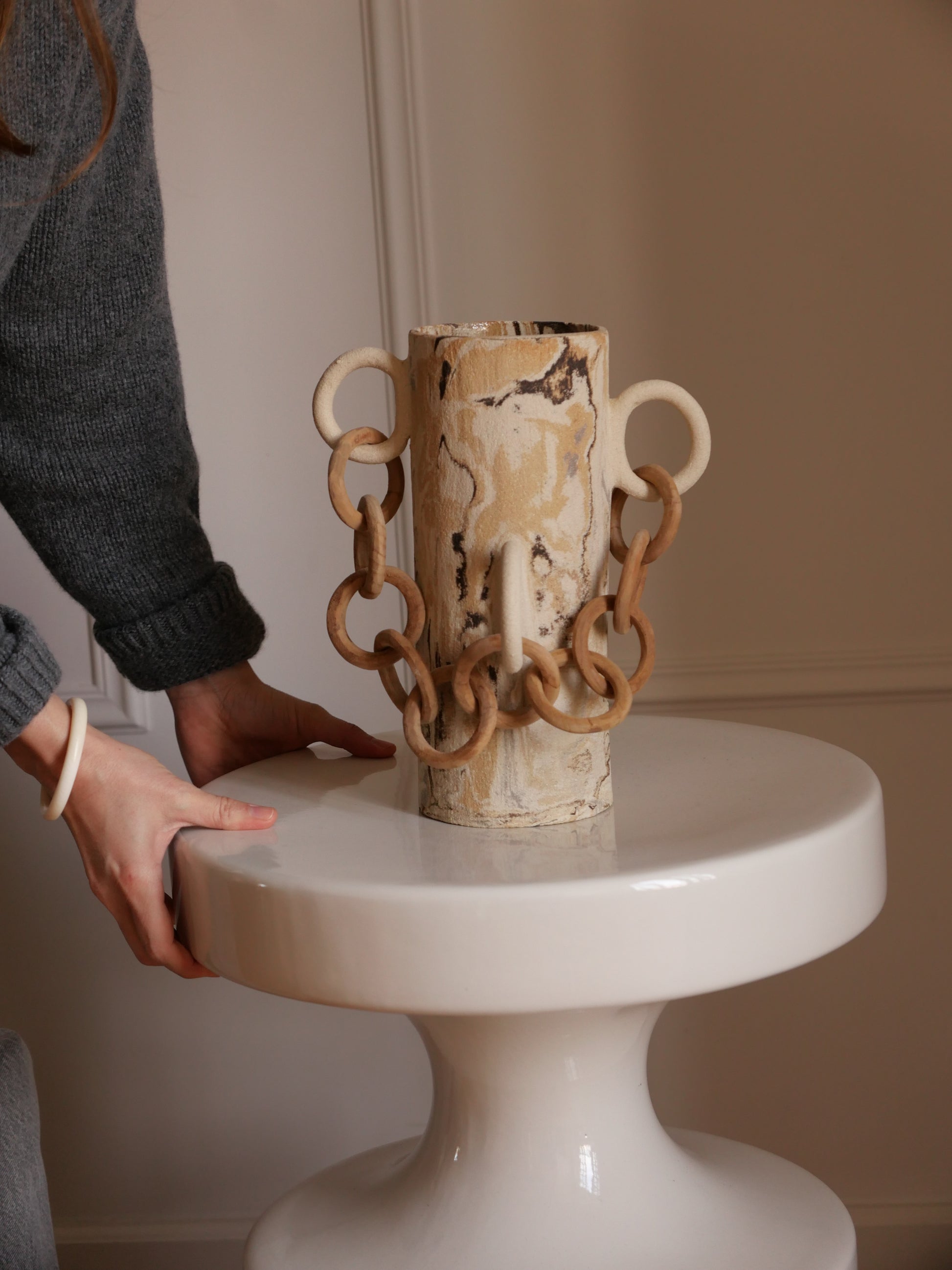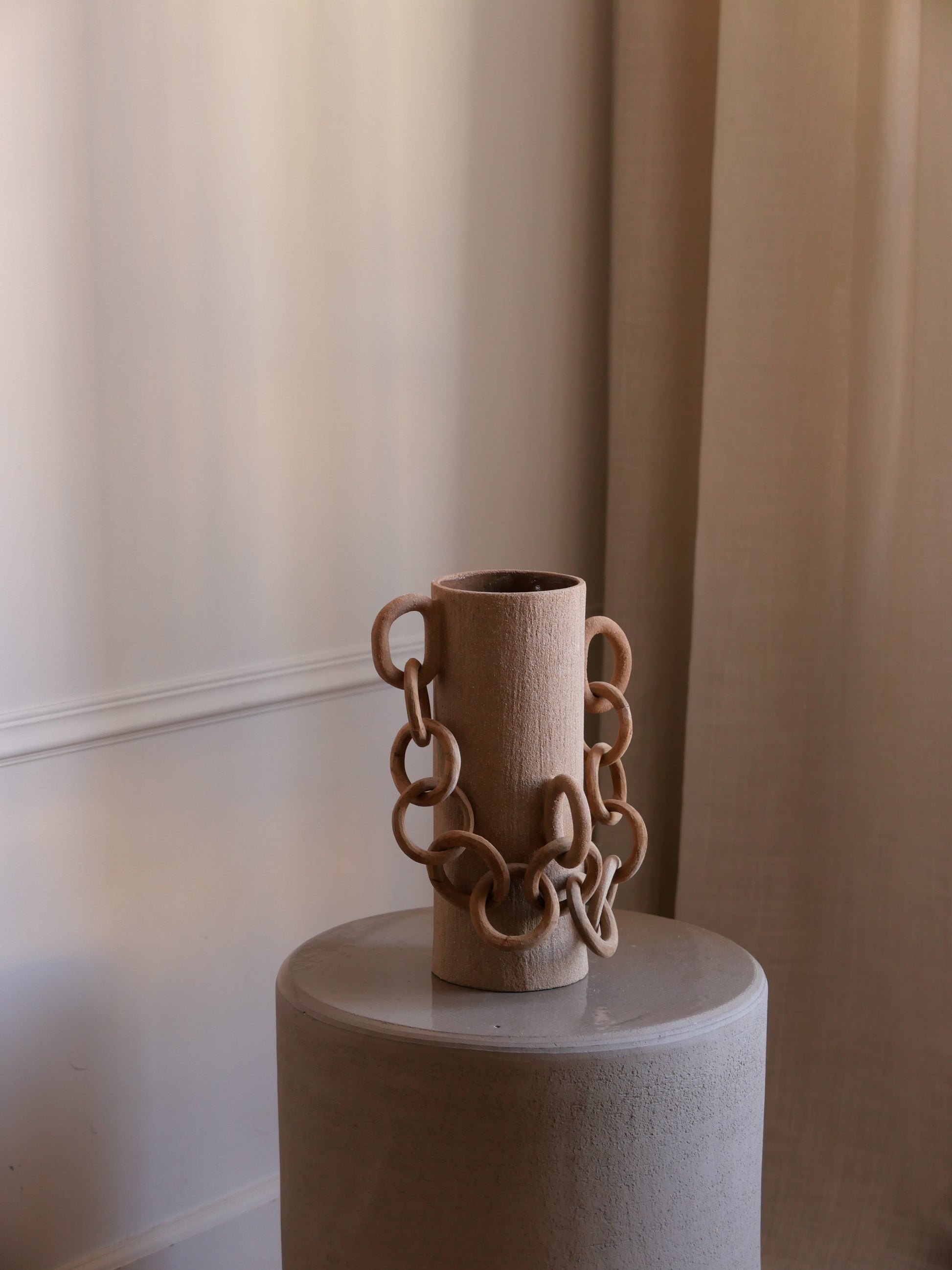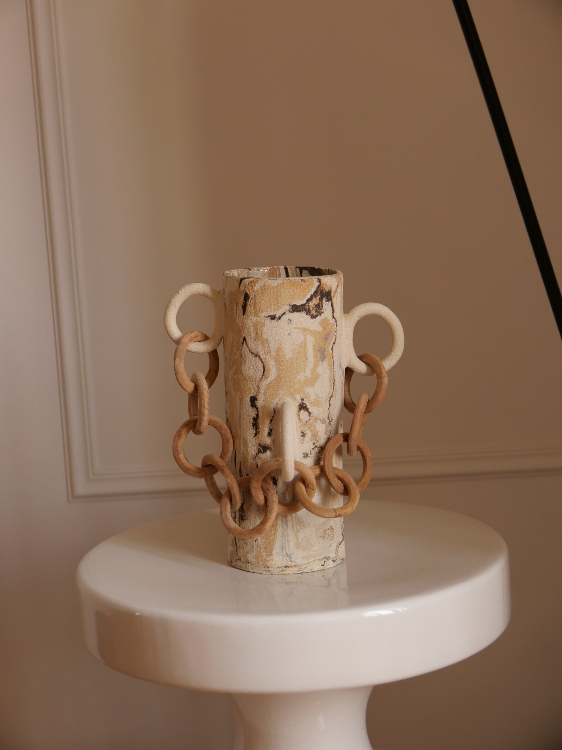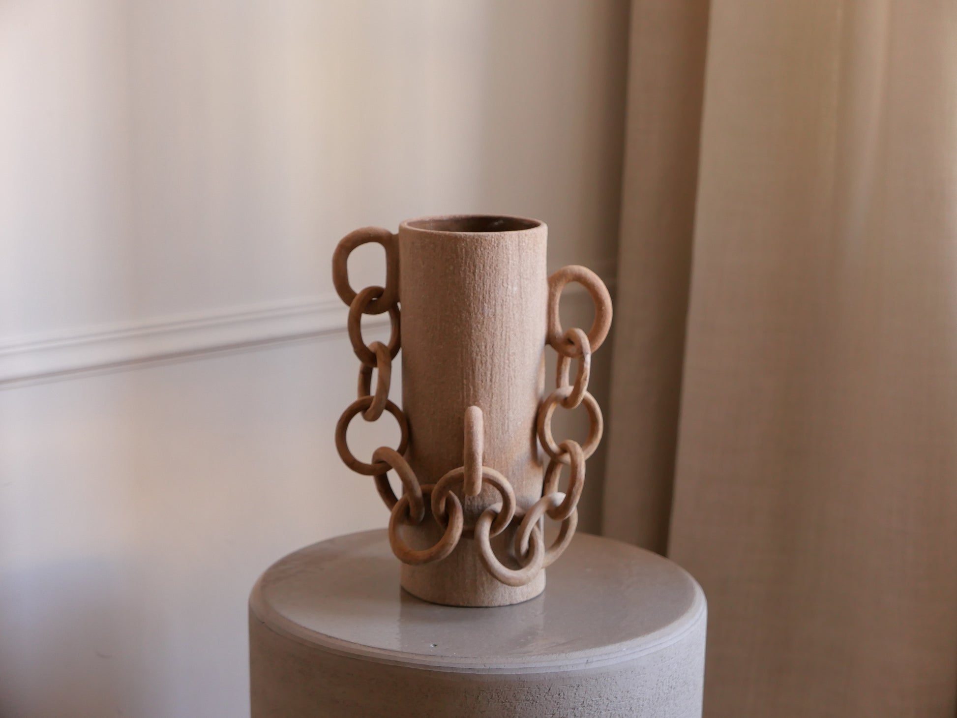 Ce vase est un hommage à la Mer Méditerranée, il fait écho aux maillons des chaines de bateau. Platon imaginait la terre et la mer reliés par une chaine et en faisait par conséquent le symbole du lien sacré.