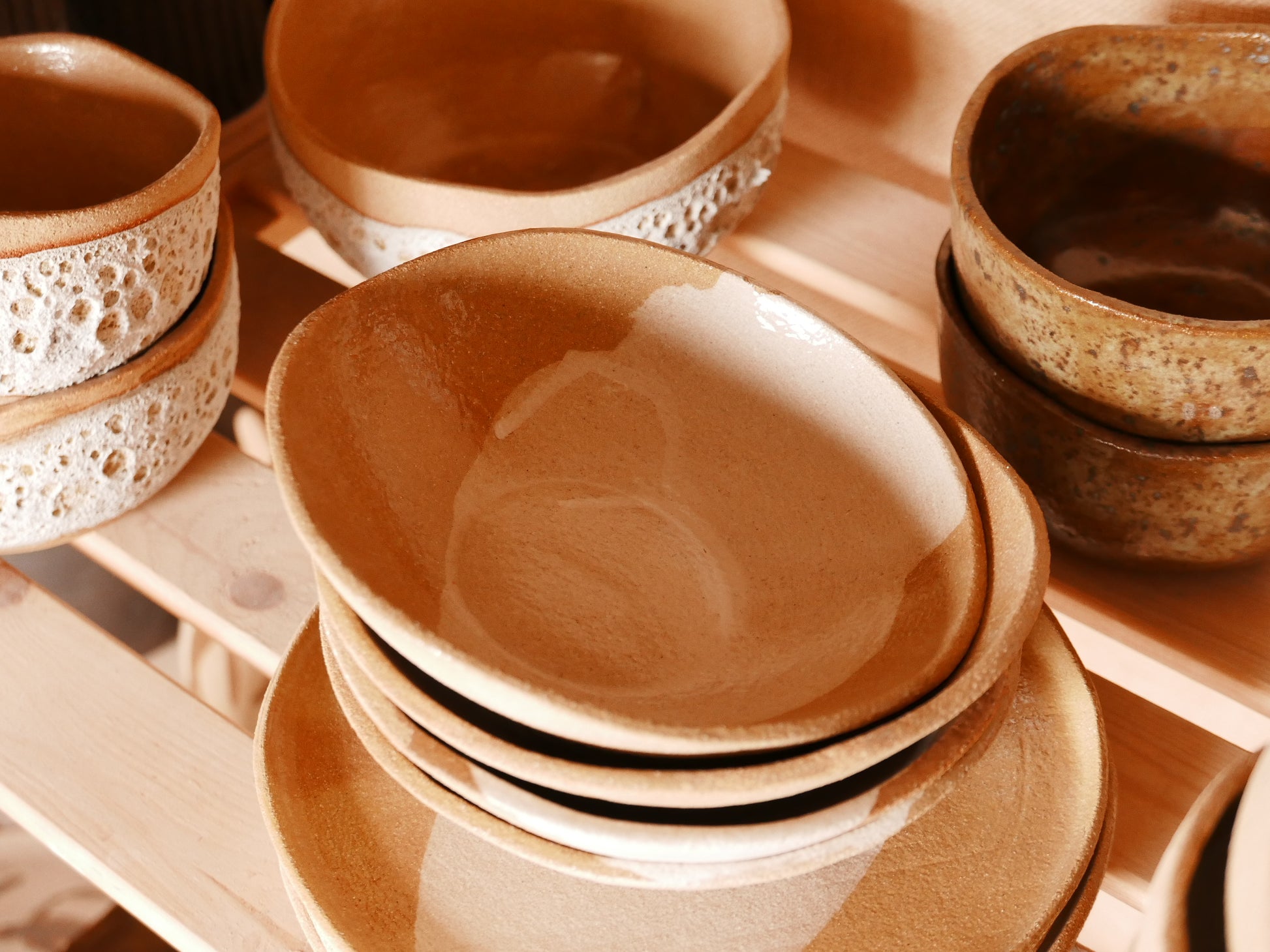 Ces assiettes, inspirées par l'ombre et l'écume, évoquent la terre, le sable et l'argile avec une beauté éthérée.