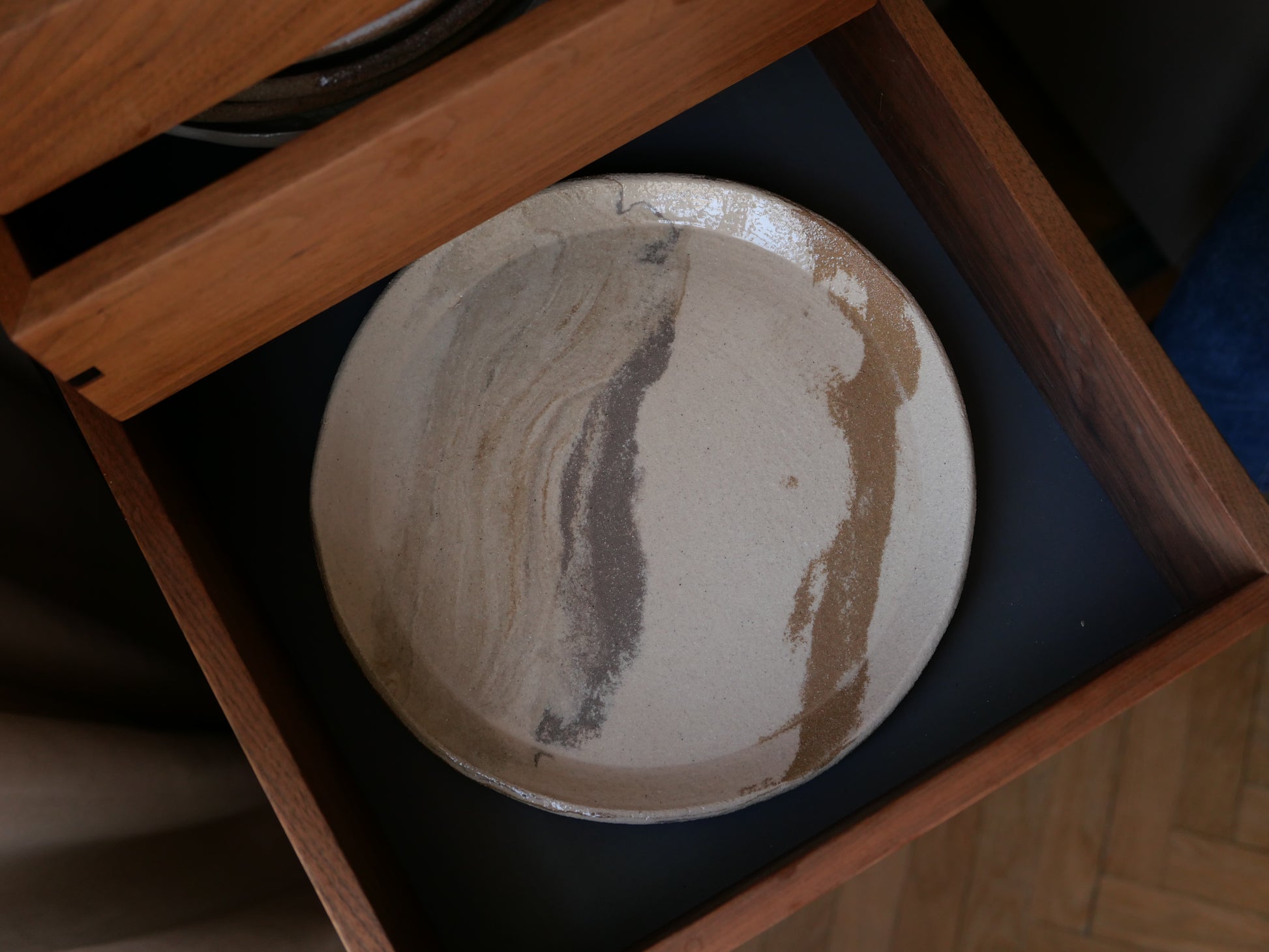 La Terre est volontairement laissée brute à l'extérieur, l'intérieur de l'assiette est émaillé pour permettre un usage alimentaire.